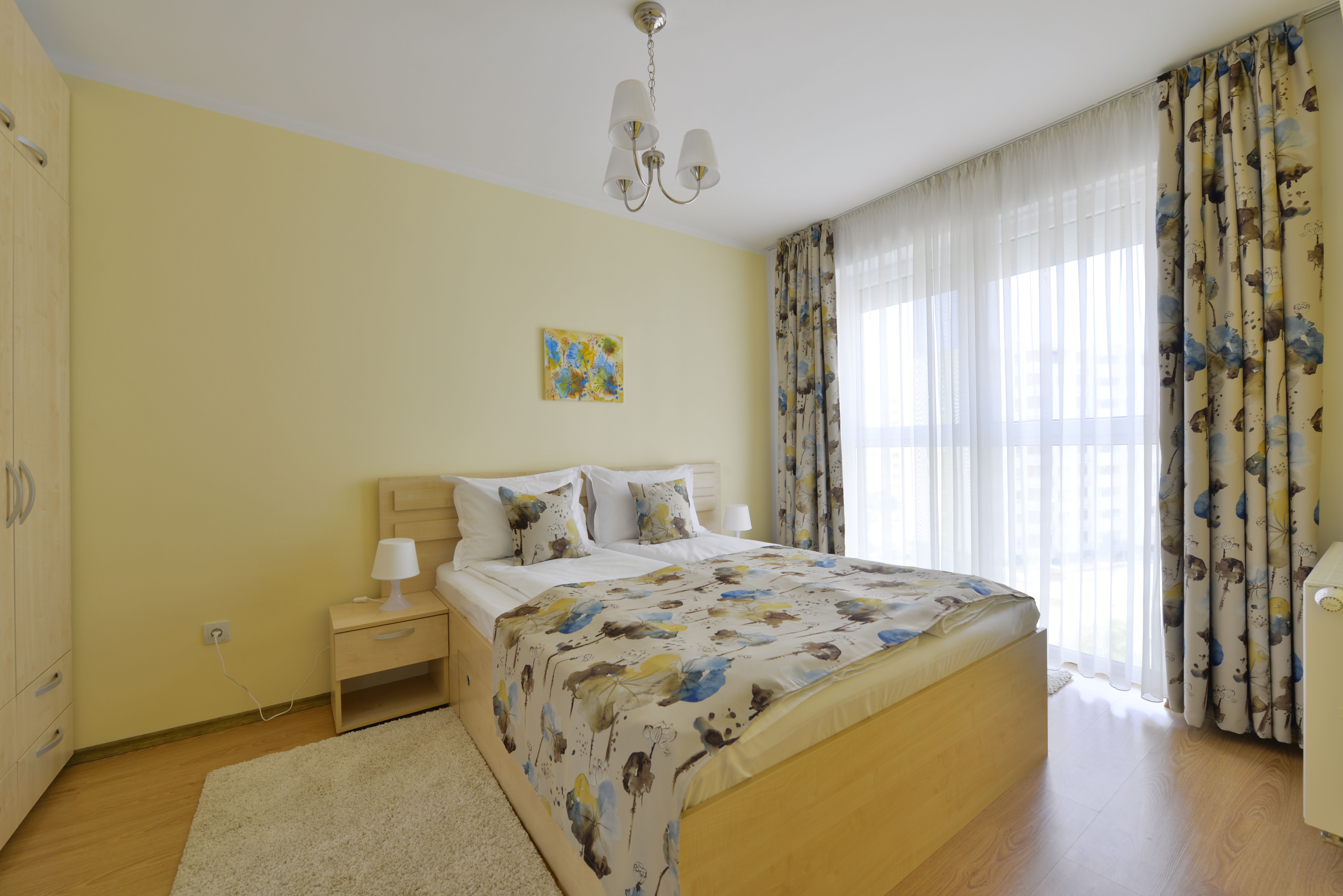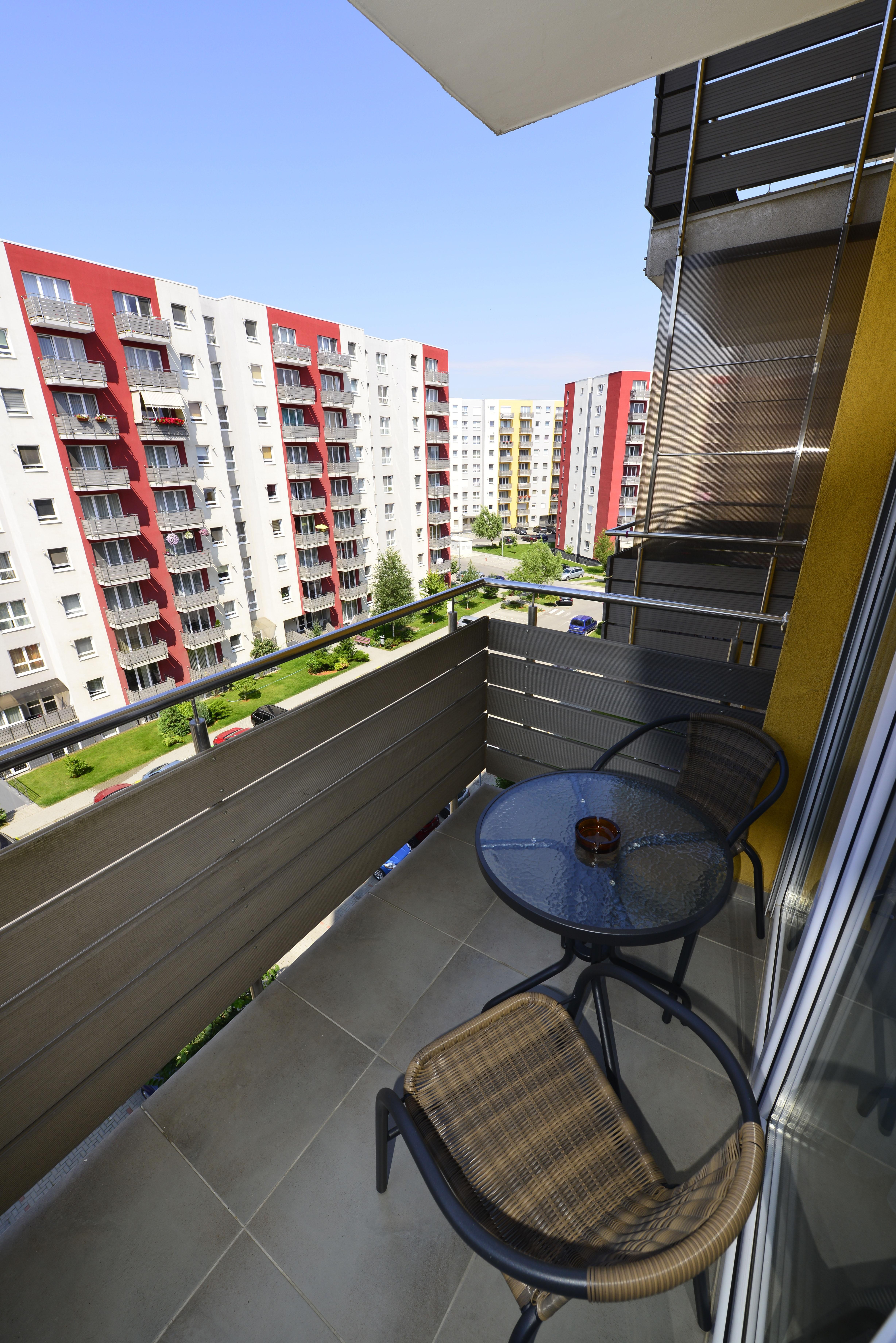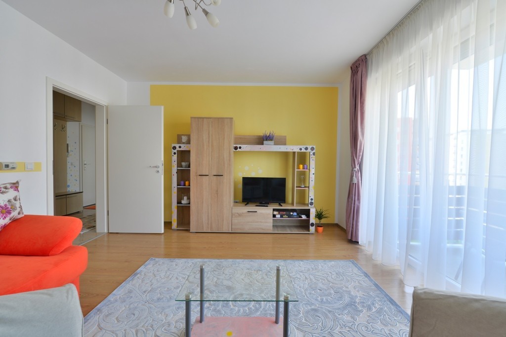 Este dotat cu toate elementele necesare confortului omului modern: termopane, parchet, gresie, centrala termica, masina de spalat, frigider, TV, internet, jaluzele de aluminiu, draperii black-out, canapea, pat matrimonial (180/200), mobila Vde balcon, loc de parcare, etc