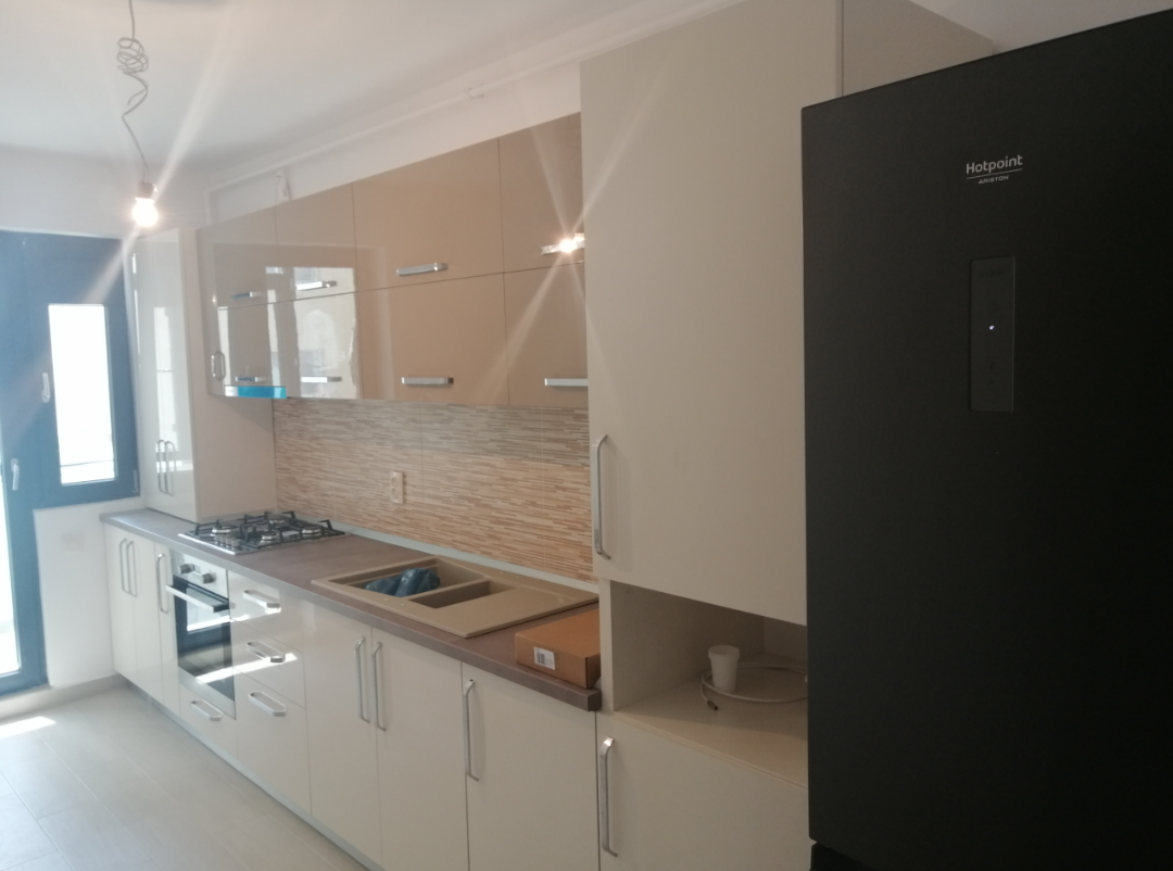 Apartamentul este mobilat, la bucatarie, mobilierul este din MDF lucios de 18 mm grosime , baie utilata complet , uși interior porta doors , tâmplărie veka!