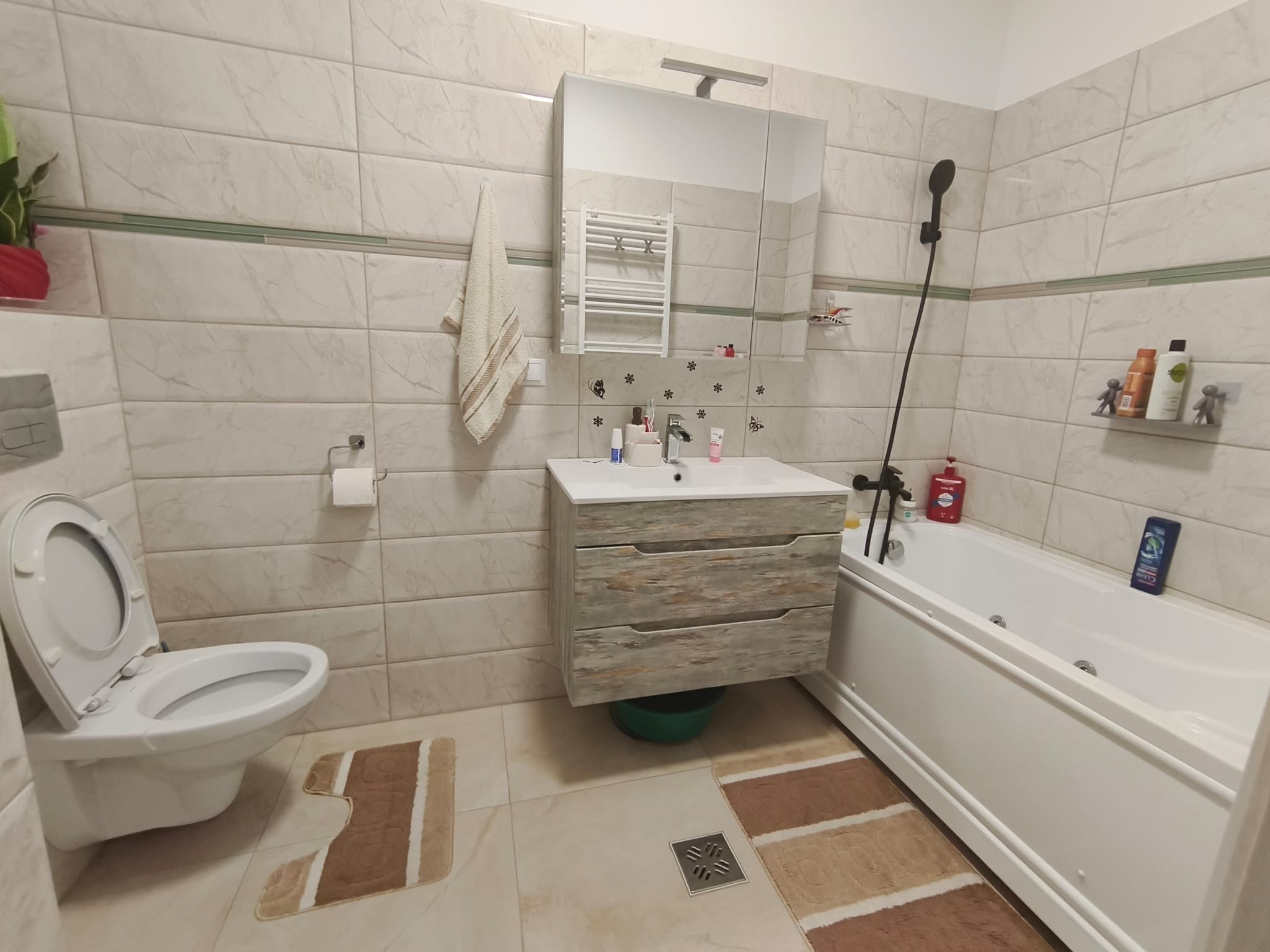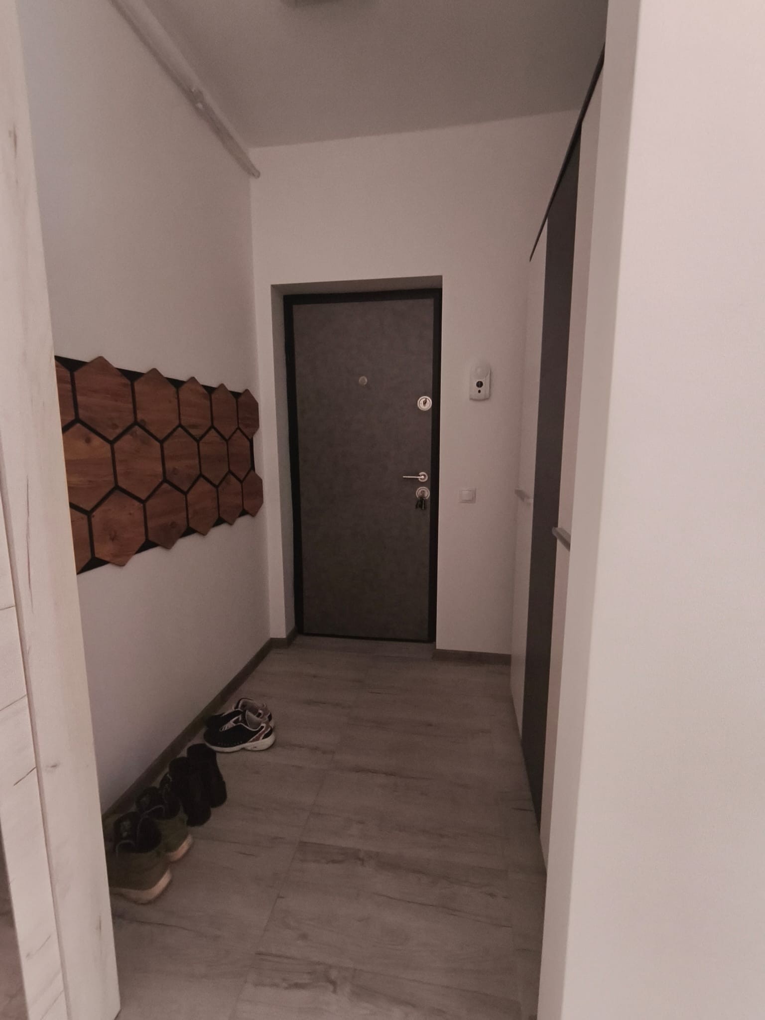 Apartamentul are suprafața utilă de 55mp + 9 mp balcon și este compartimentat astfel: