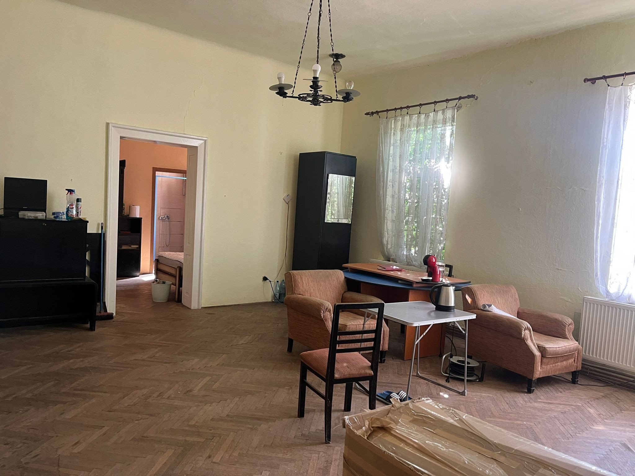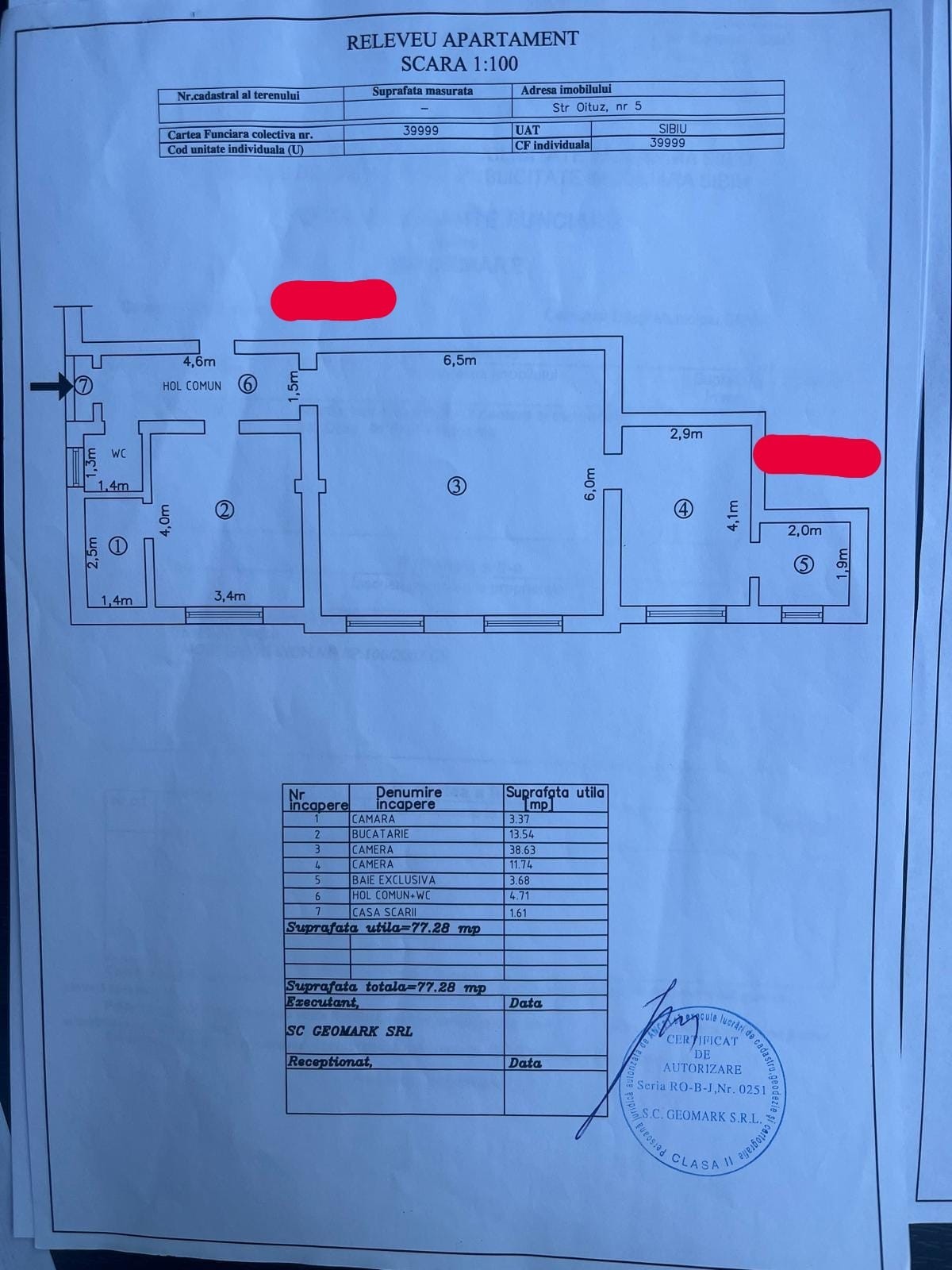 Apartament central la casa, la un pret excelent !!! Zona foarte buna MIlea -Oituz , pretabil locuinta,birou sau cabinet medical - stomatologic datorita inaltimii de 3,50 m camerelor,acesta corespunde cerintelor de autorizare. Imobilul are o suprafata utila de 77,28 mp ,cu urmatoarea configuratie : - hol 4,71 mp -bucatarie 13,54 mp -camera 38,63 mp -camera 11,74 mp -camara 3,37 mp -baie 3,68 mp - casa scarii1,61 mp Separat, apartamentul mai detine de asemenea si un garaj in curte cu suprafata de 16,24 mp si o magazie de 12,20 mp . Suprafata teren detinuta cu cota indiviza 314 mp. Momentan intrarea in apartament este comuna ,cu inca o familie,dar accesul poate fi schimbat foarte usor ,prin amenajarea unei intrari din terasa exsitenta in curte,astfel se poate obtine acces separat si o zona privata in partea din spate a curtii datorita cotei generoase de teren -314 mp de care acest apartament beneficiaza. Apartamentul se vinde nemobilat ,este nelocuit si necesita amenajare / renovare ,oferind astfel posibilitatea cumparatorului de a-l amenaja dupa nevoile si gusturile sale. Daca regasesti in descrierea oferita mai sus imobilul care ti se potriveste,nu ezita sa ne contactezi la 0757100277.