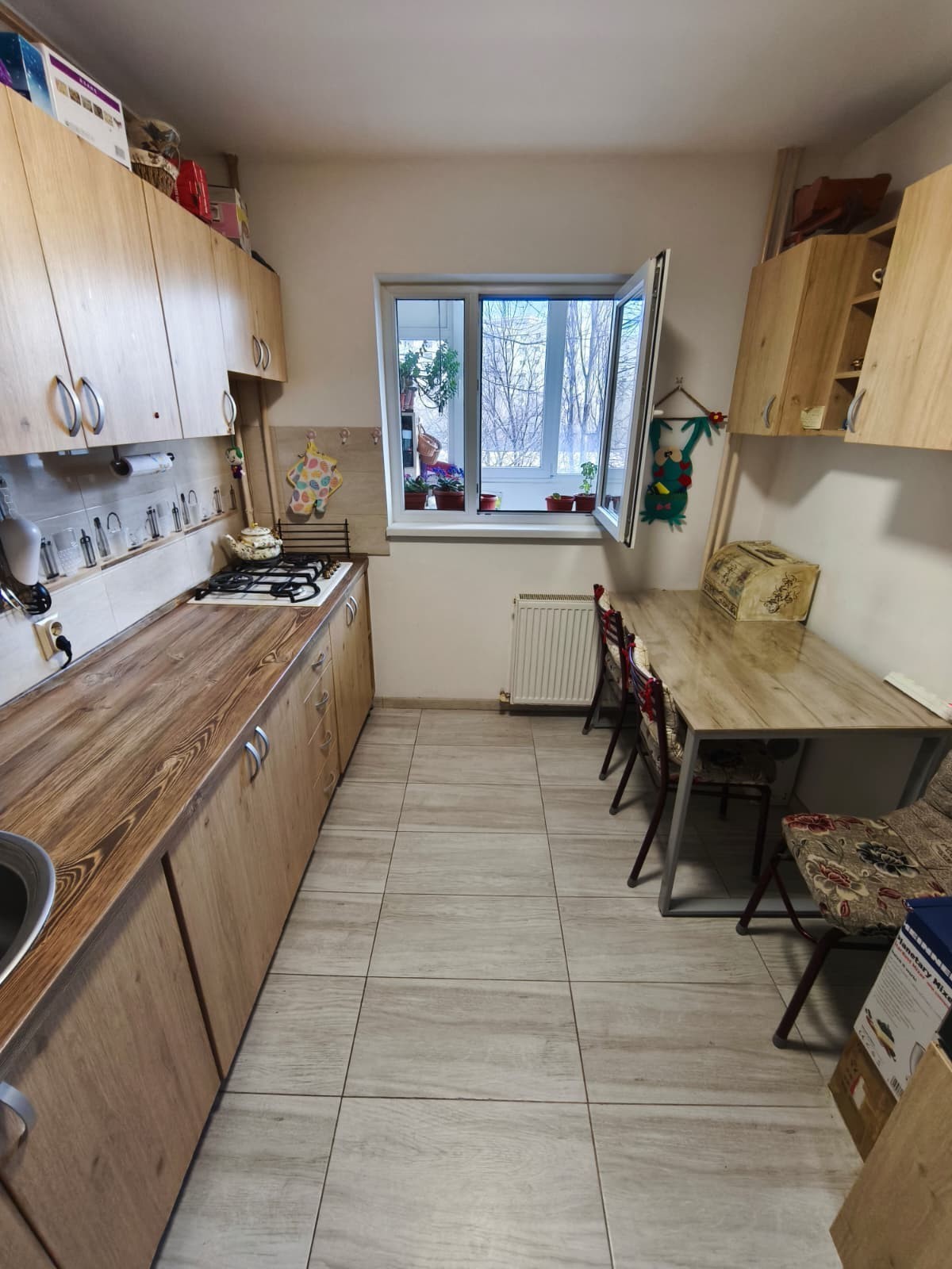 Apartamentul a fost renovat în 2025, se vinde nemobilat, iar un avantaj important este țeava de gaz trasă în apartament, pregătită pentru instalarea unei centrale termice proprii.