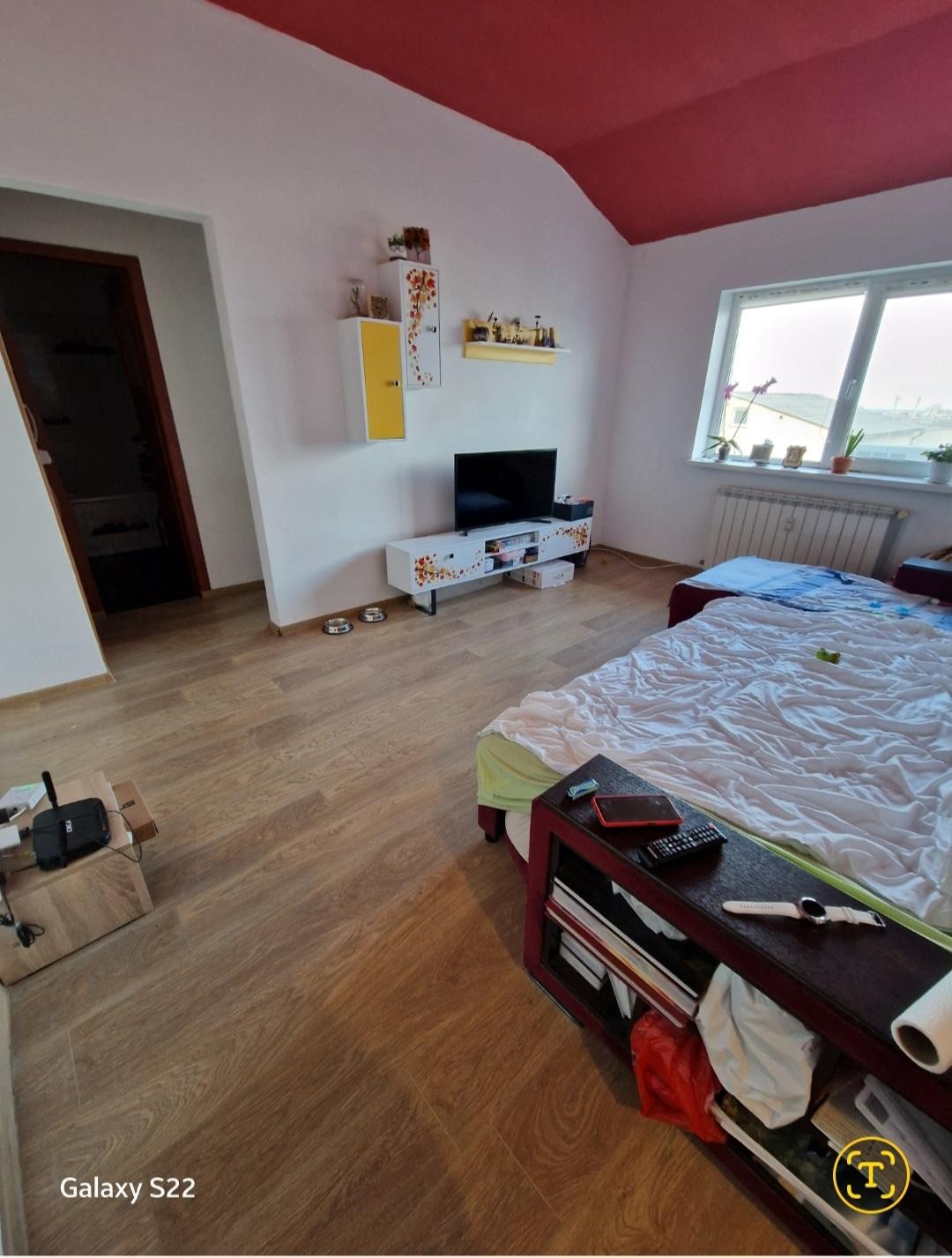Vând apartament 3 camere Constanta, zona Galeriile Soveja, strada Dionisie cel mic. Apartamentul este decomandat, parchet laminat in toate camerele, termopane, aer condiționat, gaze doar la aragaz, încălzire de la RADET, repartitoare la calorifere, placat exterior, foarte călduros iarna și răcoros vara. Este situat la mansarda, văruit de curând cu lavabil alb și tavane colorate in fiecare camera și se vinde mobilat și utilat.
