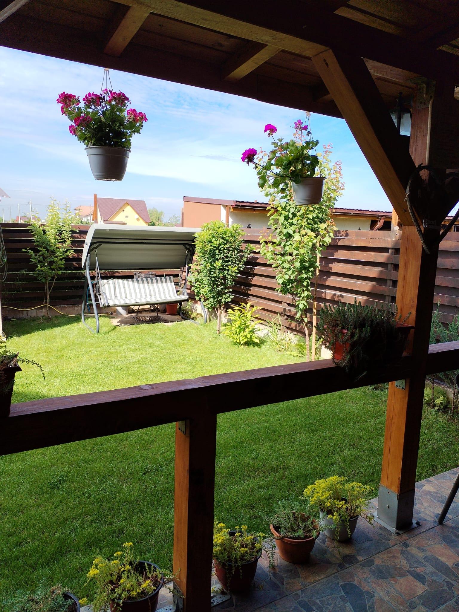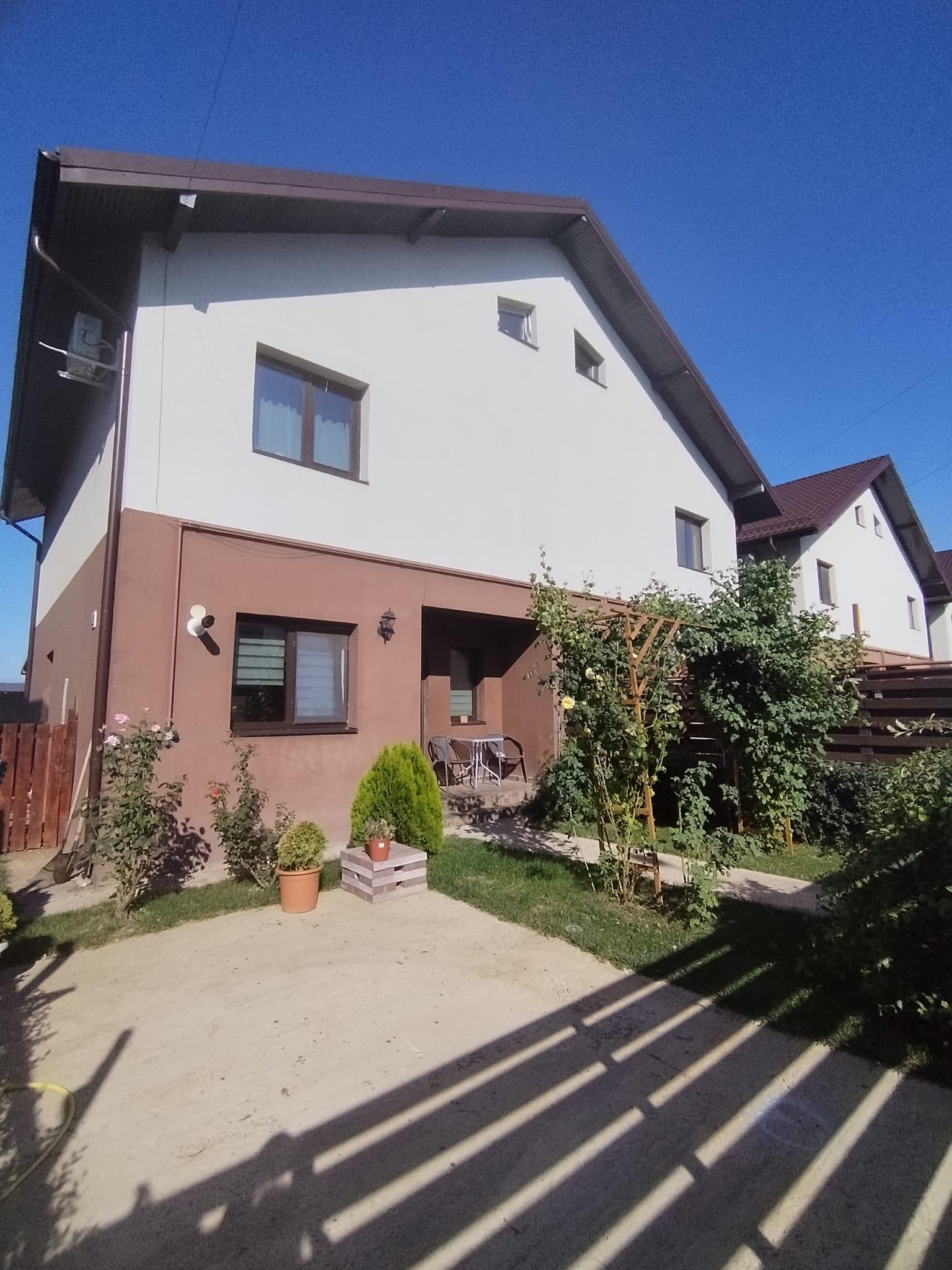 Aceasta casă satisface dorinta de confort si intimitate a familiilor cu copii sau a celor mai pretentiosi clienti care nu se pot lipsi de luxul specific unei locuinte urbane, dar care isi doresc sa traiasca inconjurati de linistea si frumusetea naturii, intr-o casa deosebita construita la standarde inalte.Curtea este amenajata cu gazon natural,conifere,gard viu,flori și pomi fructiferi ,ideală pentru petrecerea timpului liber.