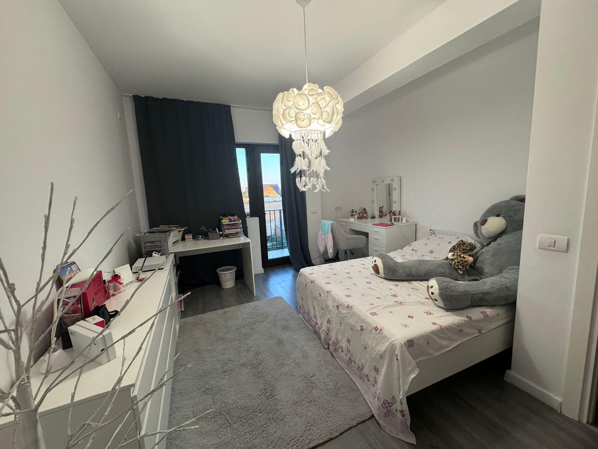 Imobilul are in componenta 3 camere, dispuse astfel: la parter un living generos cu dining si terasa exterioara acoperita de 17,34 mp, bucatarie inchisa cu acces rapid in living, dar si in terasa imobilului, spatii pentru depozitare si grup sanitar de serviciu, iar etajul este compartimentat in 2 dormitoare ample, unul dintre acesta este insotit de balcon, nu lipsesc spatiile de depozitare si baia, de asemenea curtea beneficiaza de o magazie numai bună pentru depozitare.