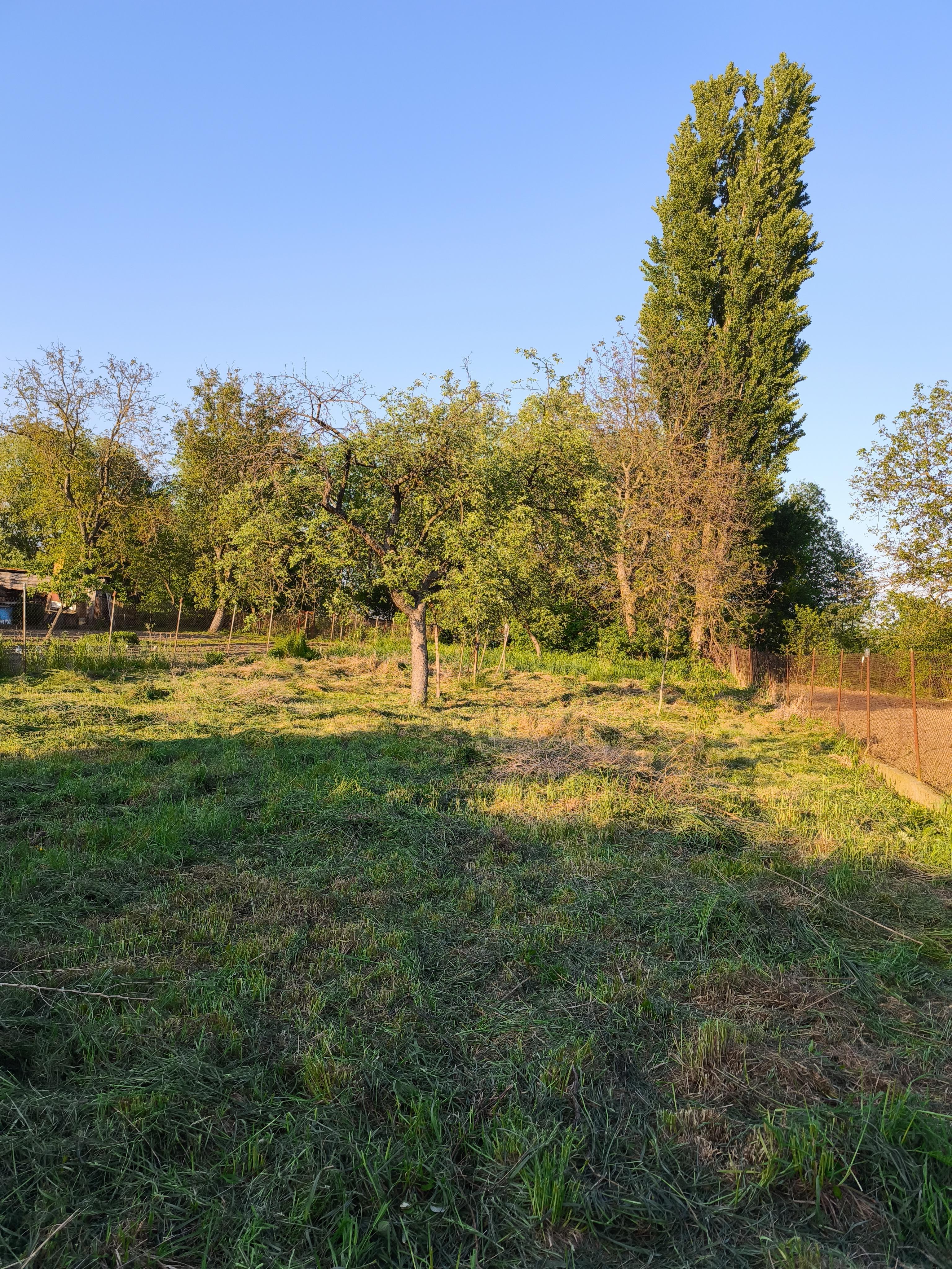 Proprietatea dispune de o grădină mai mică pentru păsări și de o grădină mare pentru legume, cu pomi fructiferi, ambele cu o suprafață totală de 700 mp.
