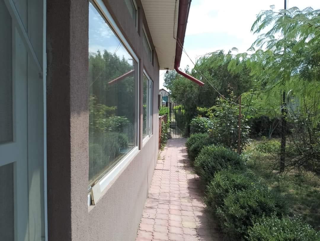 Mai departe, proprietarea mai are magazie lemne, trei padocuri pentru câini, coteț găini, trotuare din pavele, două rânduri de viță de vie și boltă.