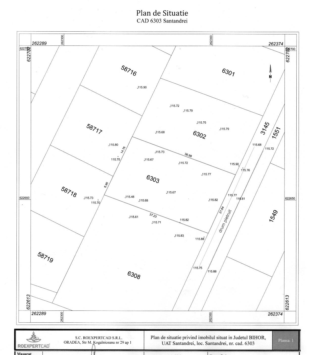 Vand teren INTRAVILAN 800 mp la intrarea in Santandrei dinspre Oradea, str. 1 Decembrie, nr. Cadastral 6303.