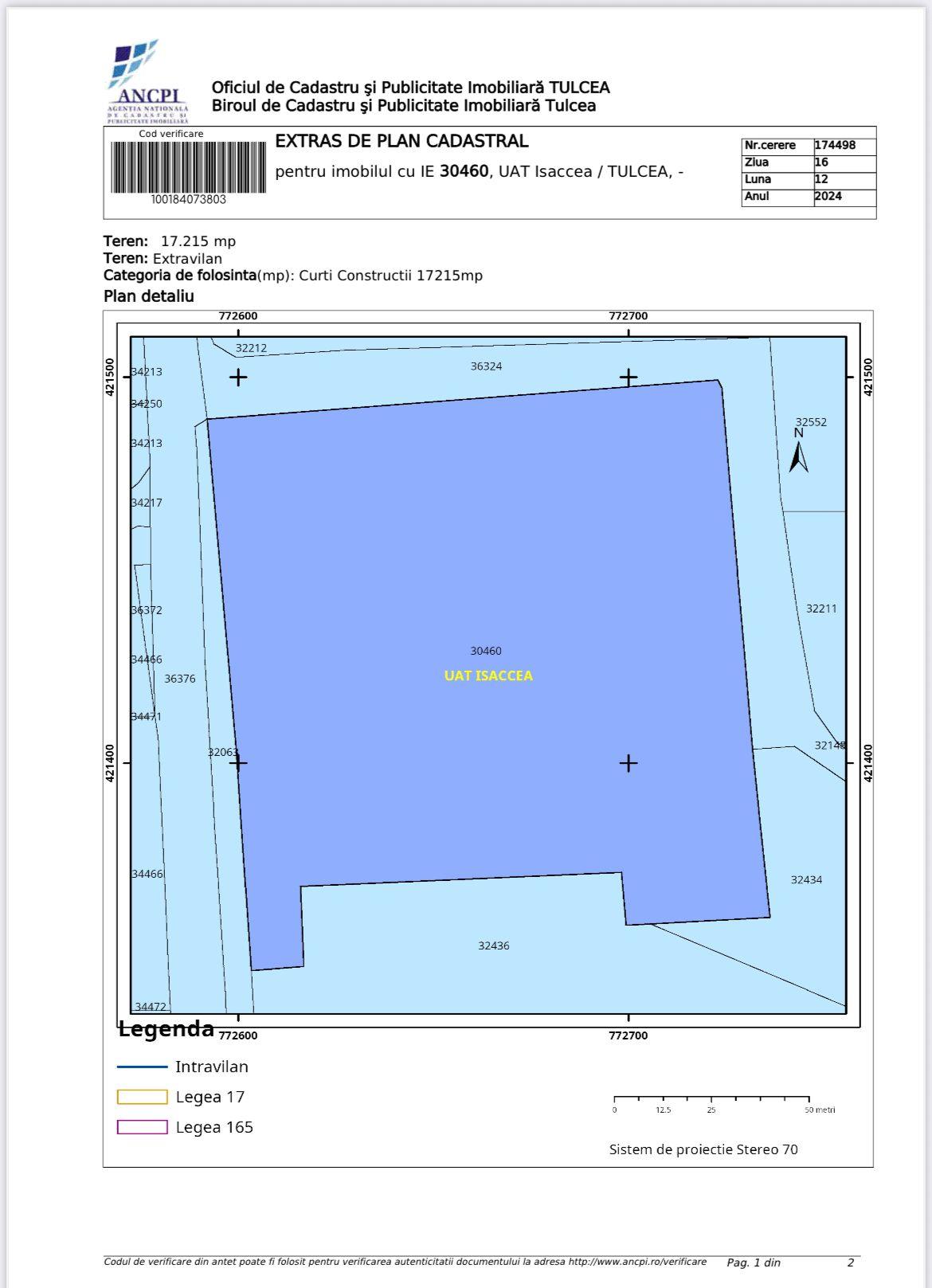 Jud Tulcea, în suprafață de 17.215 mp (din care 14.000 mp - trup intravilan)