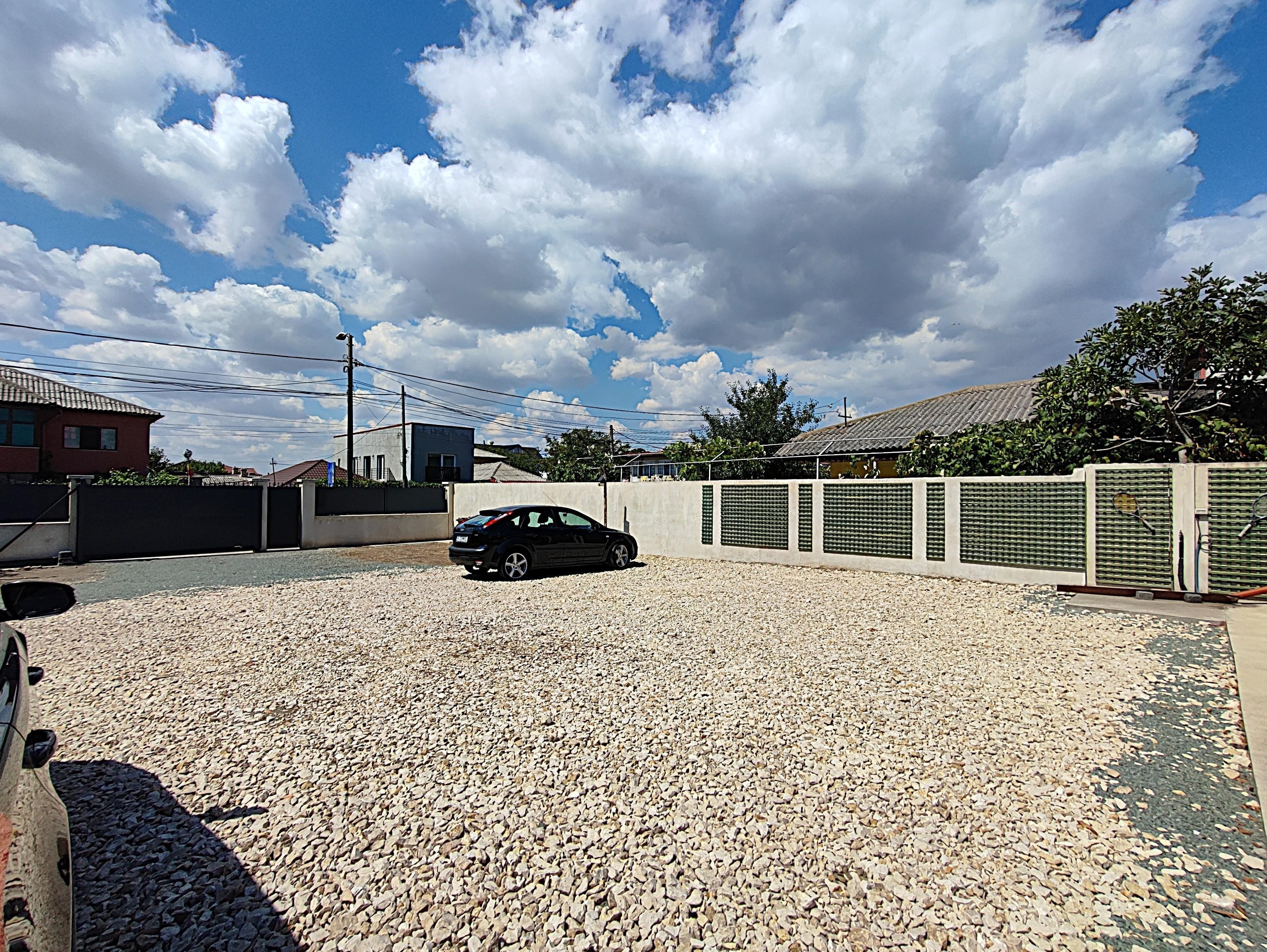 * Terenul este acoperit cu pietris, iar la strada este gard nou cu poarta acces auto cu telecomanda.