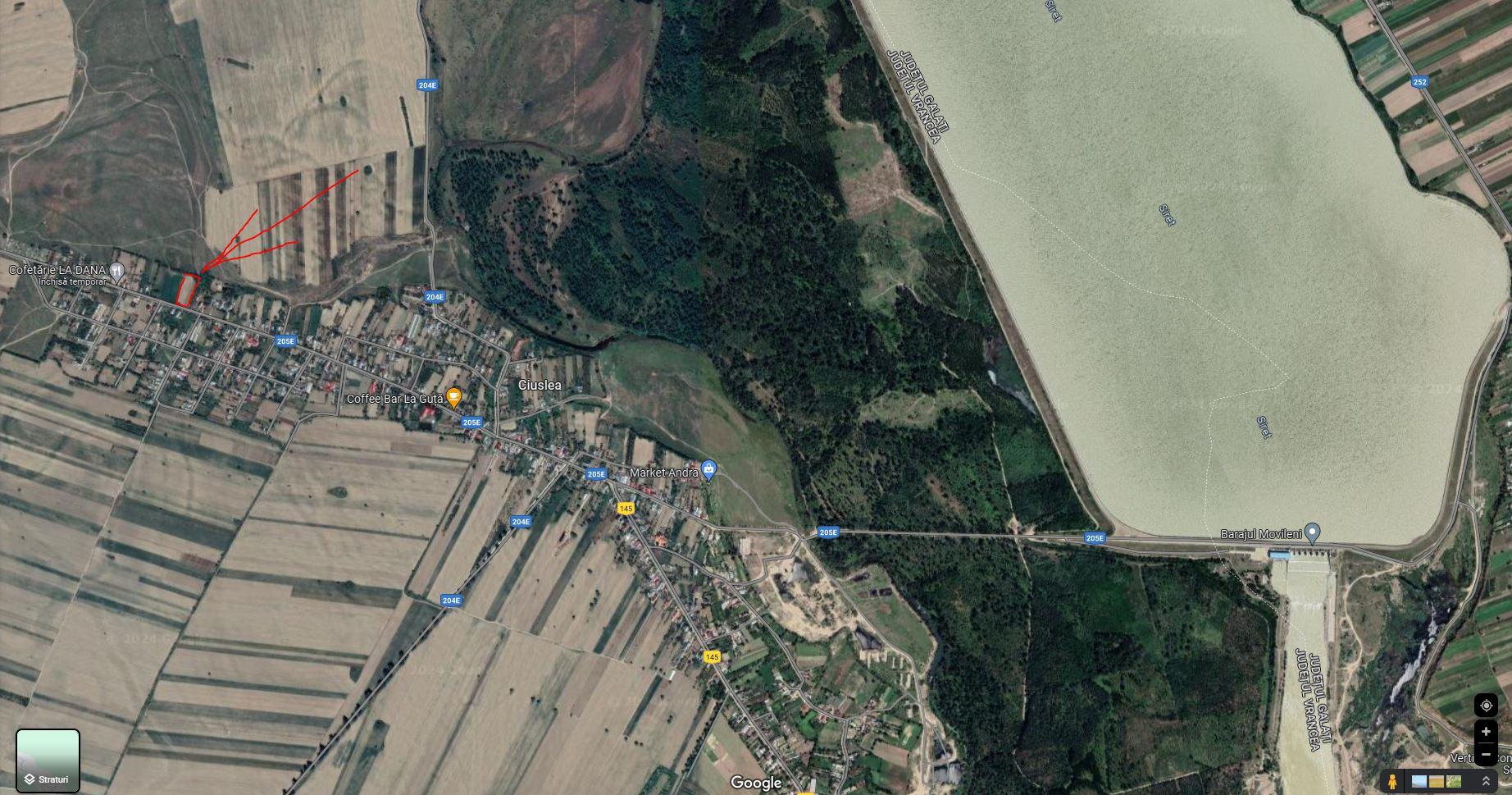 La 15 de minute de orasul FOCSANI si la 5 minue de drumul European E85. La cca 3 km de Siret si barajul Movileni ( la limita judetelor Vrancea si Galati)