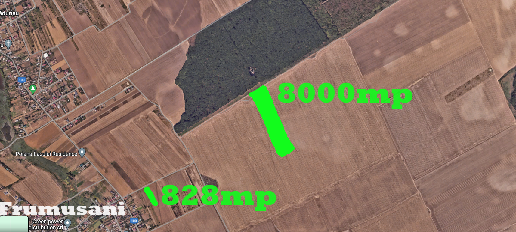 Bonus - Parcela la 200 m de satul Frumușani: 828 mp, deschidere 5.5 m